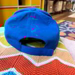 Direct CMYK print over AWARE™ 190gr blue 5 panel baseball cap made from recycled cotton 60% and recycled polyester 40% or recycled PET. One size with velcro fastener.