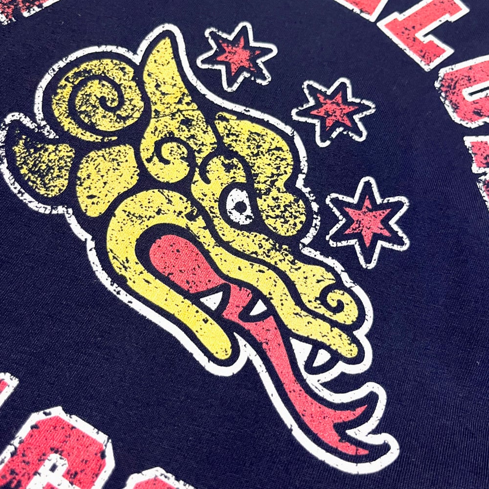 Direct CMYK print over navy, fair trade, unisex Stanley/Stella tee 100% organic cotton.