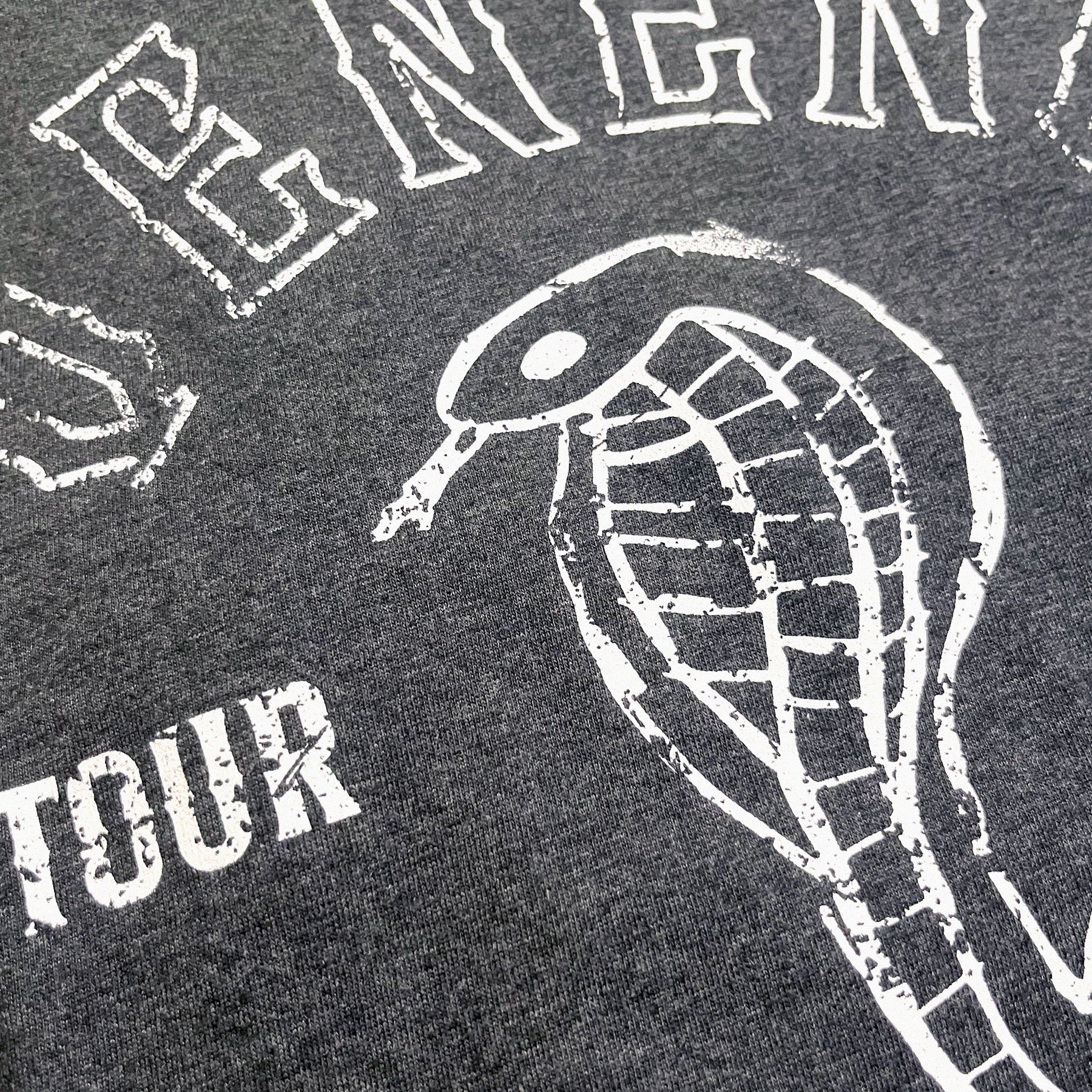 Direct CMYK print over dark heather gray, fair trade, unisex Stanley/Stella tee 100% organic cotton.